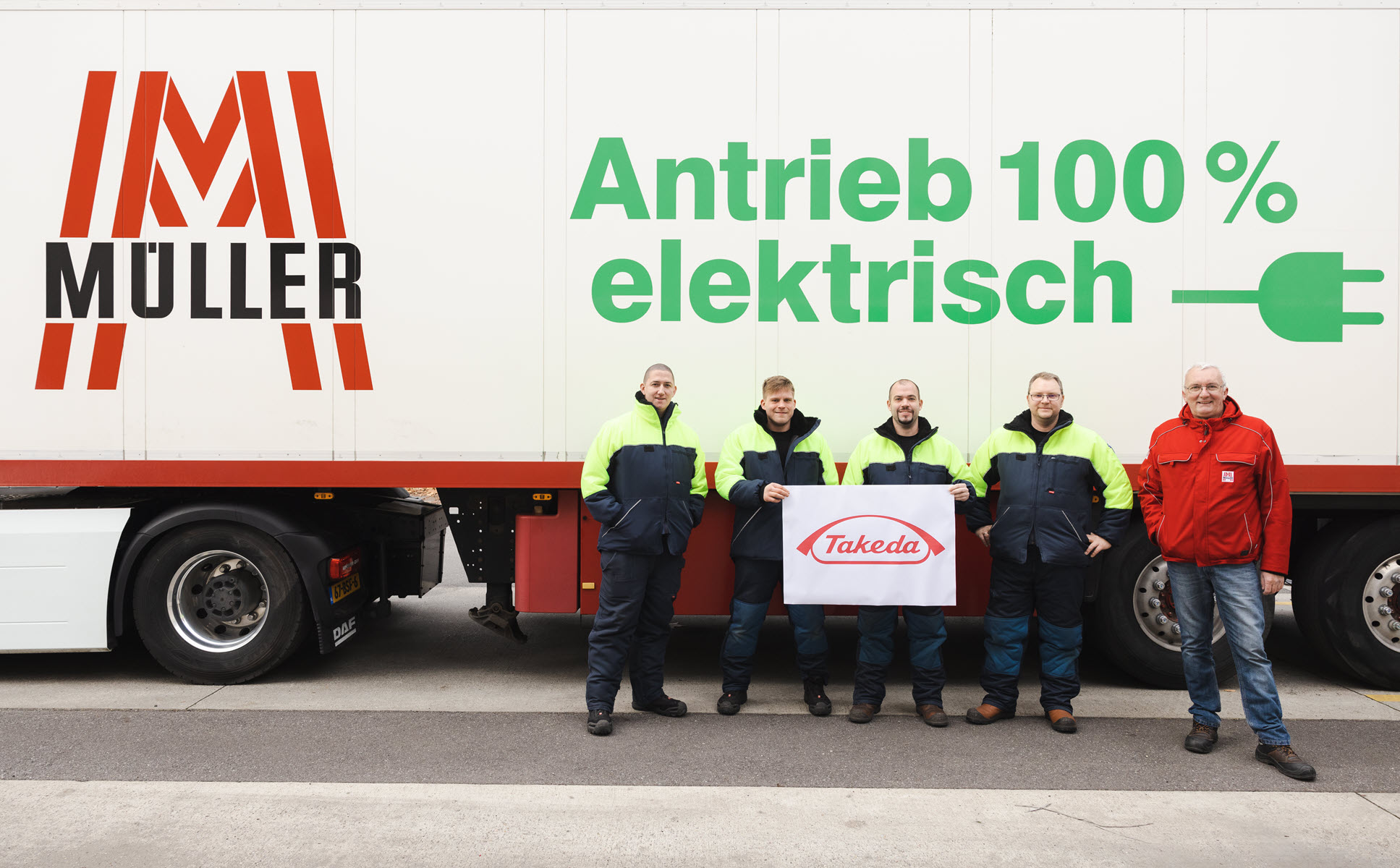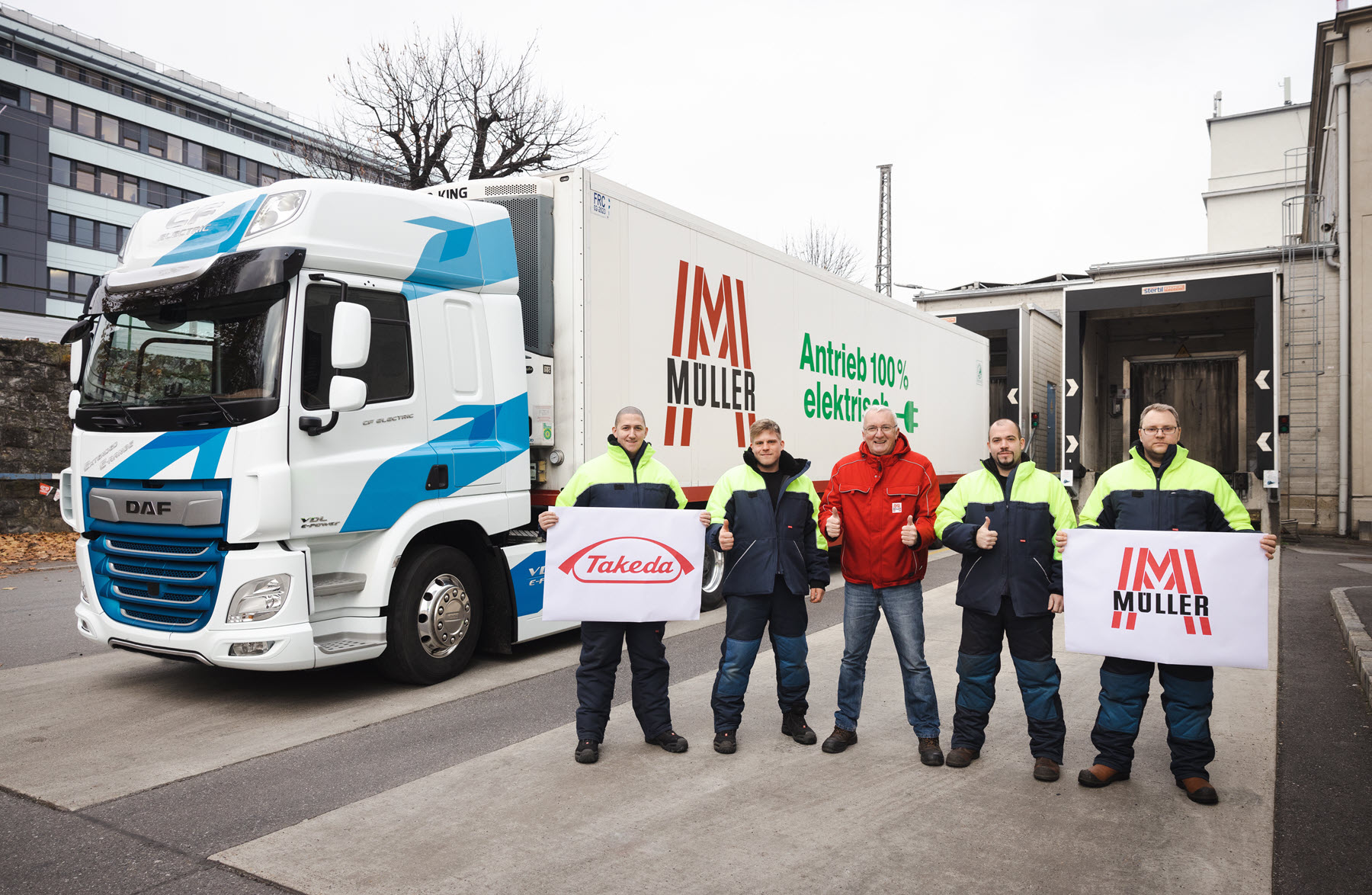„Gemeinsam mit Takeda starten wir jetzt ein Pilotprojekt, mit dem wir erstmals den Einsatz von E-Mobilität bei Groß-LKW und Sattelzügen im Echtbetrieb testen werden. Die daraus gewonnenen Erfahrungen auf der Kurzstrecke und im urbanen Bereich werden künftige Umstellungsschritte unserer eigenen Flotte maßgeblich beeinflussen und wichtige Informationen und Learnings für unsere Kunden, den LKW-Hersteller DAF und die gesamte Logistik-Branche bringen“, so Müller weiter.