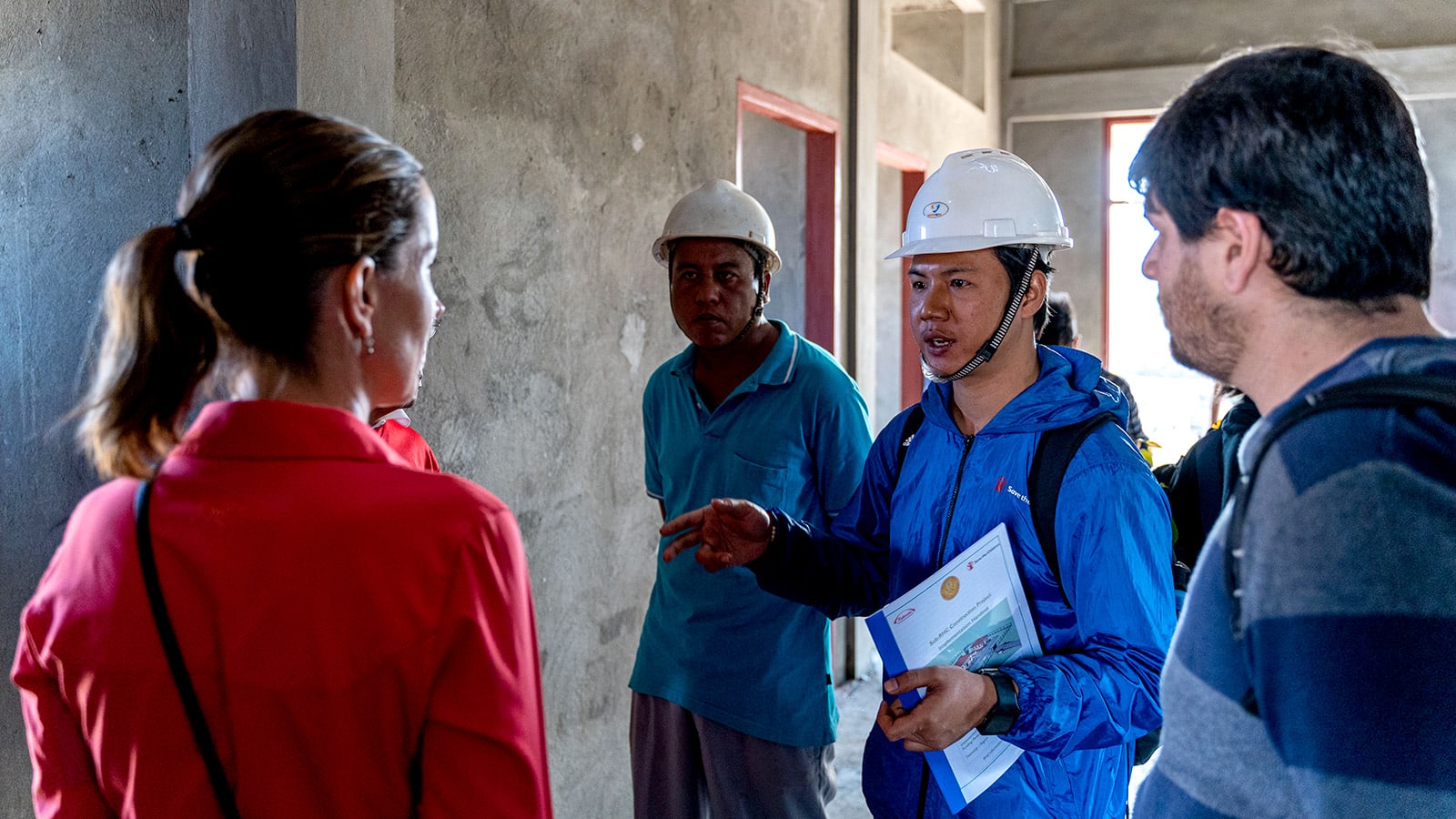 従業員のグループは、次にティ・チャ・セッを訪問し、本プログラムを通じて建設された4カ所の新しい保健センターのうちの1つを見学しました。これら4つの施設では、出産を控えた女性や子どもを産んだばかりの母親に対し、適切な資格を有する助産師が適切なケアを提供します。