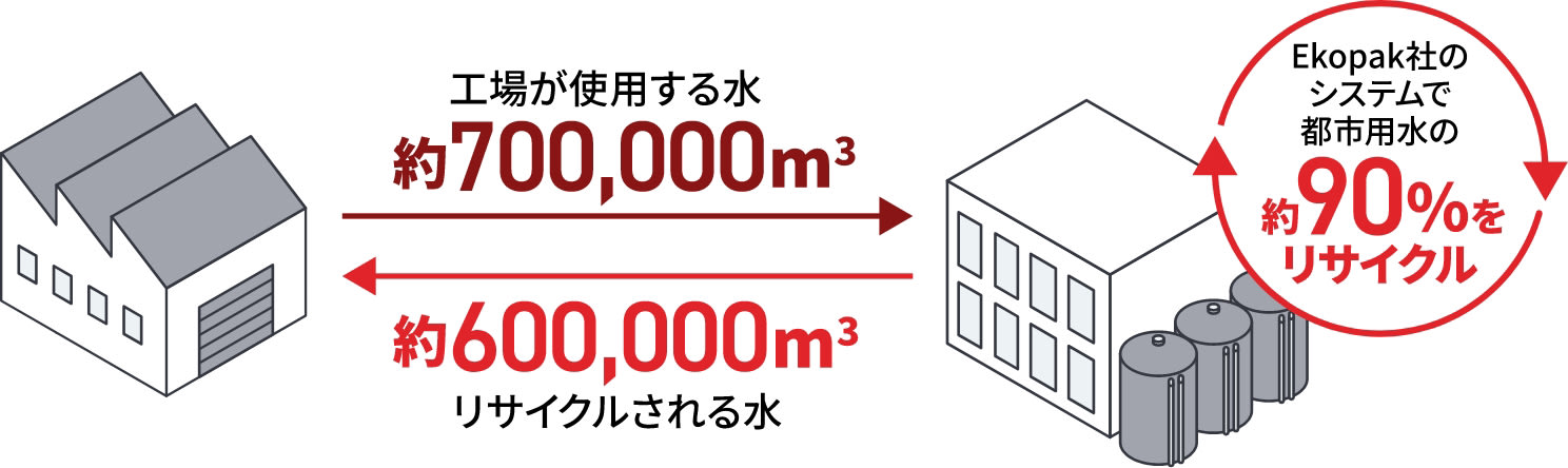 これは、廃水および採石場用水を再利用することで実現可能になります。現在は、75%の廃水をリサイクルして使用しています。